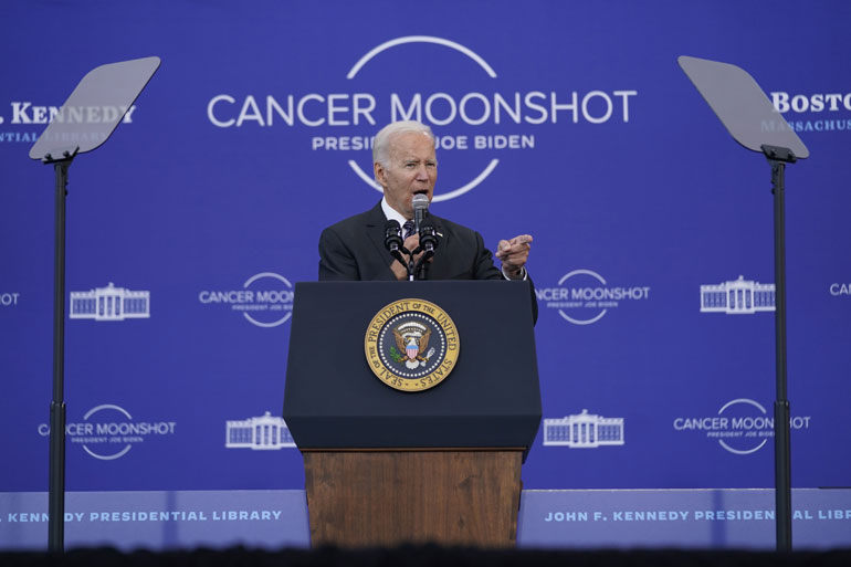 Υποσχόμενος την κατάκτηση της Σελήνης, ο Τζον Φιτζέραλντ Κένεντι έθεσε έναν εθνικό στόχο και τον πέτυχε, υπενθύμισε. Πριν από λίγους μήνες, ο πρόεδρος Μπάιντεν είχε μιλήσει για τον στόχο μείωσης κατά 50% των θανάτων από καρκίνο μέσα σε διάστημα 25 ετών.