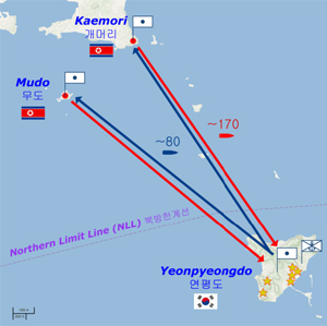 Εκείνη την περίοδο η επίσημη γραμμή της Πιονγκγιάνκ ήταν ότι απάντησε σε όλμους που έπεσαν εντός των θαλάσσιων συνόρων της κατά τη διάρκεια στρατιωτικών ασκήσεων. Νωρίτερα, τον Μάρτιο του 2010, το πολεμικό πλοίο «Cheonan» είχε βυθιστεί πολύ κοντά στην εν λόγω περιοχή, προκαλώντας τον θάνατο 46 ανθρώπων. Η Σεούλ κατηγόρησε από την πρώτη στιγμή την Πιονγκγιάνγκ πως βρίσκεται πίσω από τη βύθιση.
