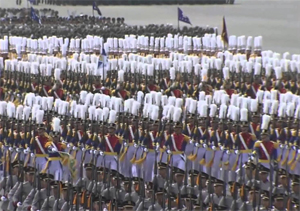 Περίπου 11.000 στρατιώτες συμμετείχαν στην παρέλαση, η οποία αποτέλεσε την ιδανική αφορμή για την παρουσίαση νέων εξελιγμένων οπλικών συστημάτων. Όπως μετέδωσε το ρωσικό τηλεοπτικό δίκτυο Russia Today (RT), ανάμεσα στα όπλα που έκαναν την εμφάνισή τους ενώπιον των επισήμων ήταν και συστοιχίες πυραύλων «Hyunmu-3», οι οποίοι μπορούν να πλήξουν στόχους σε απόσταση 1.000 χλμ..