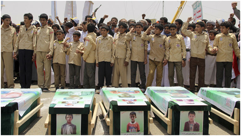 Ιδιαίτερα, μετά την πρόσφατη επίθεση εναντίον σχολικού λεωφορείου, με αποτέλεσμα να σκοτωθούν 40 παιδιά, η Σ.Αραβία ανακοίνωσε πως επρόκειτο για «νόμιμη ενέργεια, επειδή οι Χούθι χρησιμοποιούν παιδιά για ανθρώπινη ασπίδα».