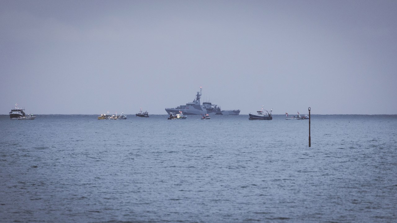 Δύο βρετανικά πλοία του Βασιλικού Πολεμικού Ναυτικού περιπολούν στα ανοικτά των ακτών του Τζέρσεϋ καθώς περίπου 80 γαλλικά αλιευτικά σκάφη συγκεντρώθηκαν στο λιμάνι του Σεντ Χέλιερ για να διαμαρτυρηθούν για τους κανόνες που έχουν επιβληθεί μετά το Brexit σχετικά με τα αλιευτικά δικαιώματα.
