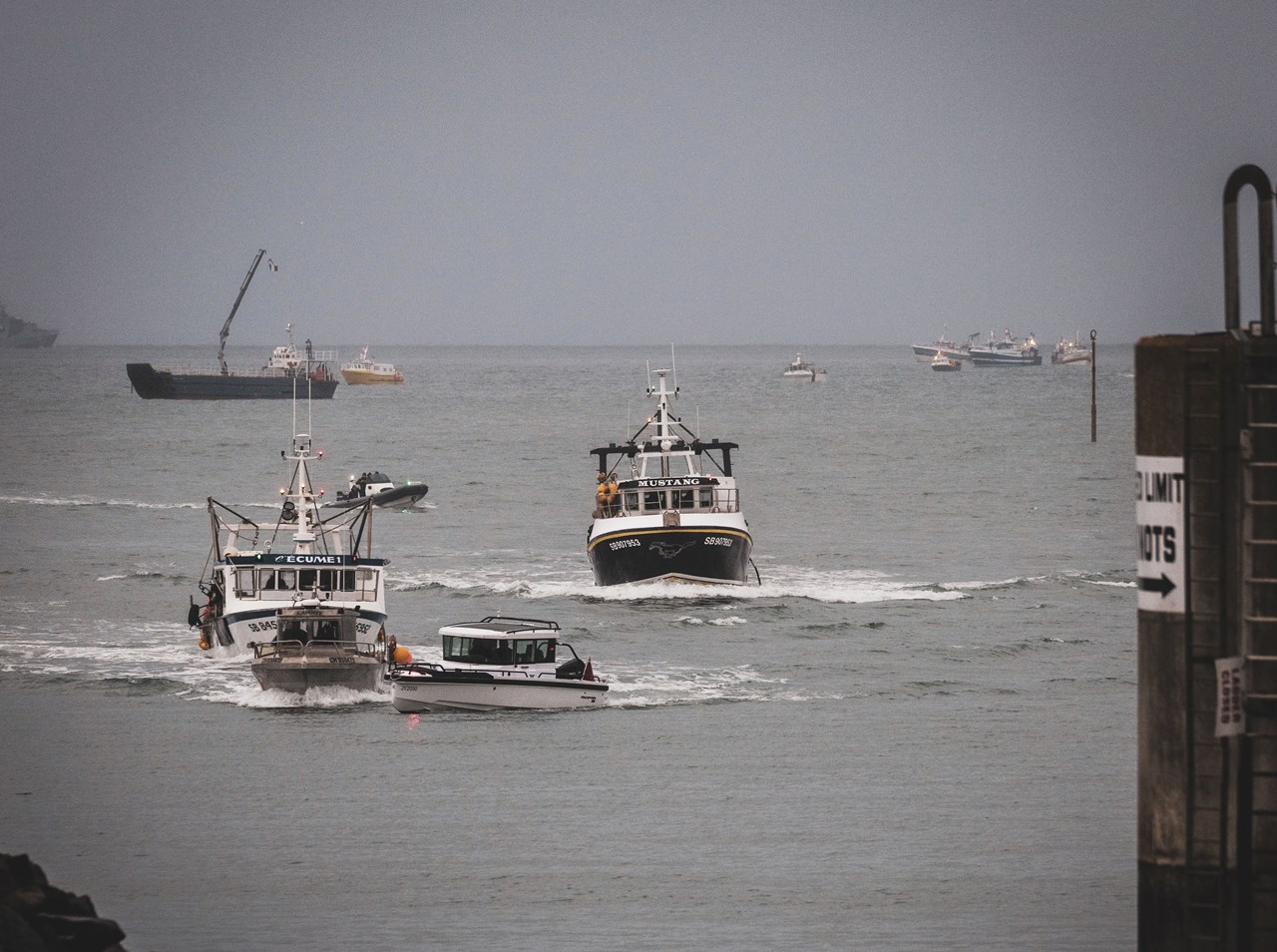 Το σκάφος θαλάσσιων περιπολικών της Γαλλίας, χωρητικότητας 32 μέτρων, PCG Athos, είχε επανατοποθετηθεί την Πέμπτη το πρωί και βρισκόταν λίγο έξω από τα νερά του Τζέρσεϋ, περίπου 8 μίλια βόρεια του νησιού. Η ναυτική χωροφυλακή επιβεβαίωσε ότι το πλοίο ήταν εκεί για να “παρακολουθεί την κατάσταση και να εγγυάται την ασφάλεια των ανθρώπων στη θάλασσα”.