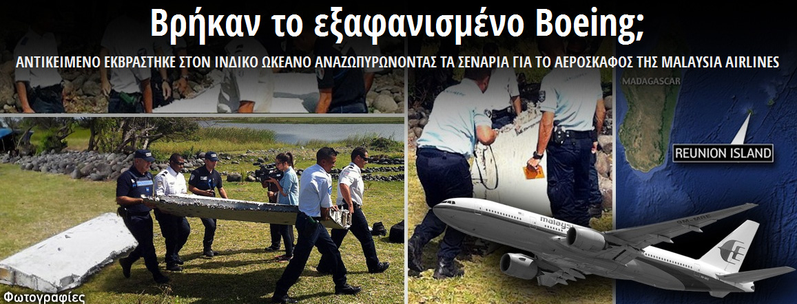 Κλιμακώνονται οι έρευνες και αναζωπυρώνονται τα σενάρια για το τι συνέβη με την πτήση MH370 των Μαλαισιανών Αερογραμμών, καθώς όπως όλα δείχνουν το αντικείμενο που βρέθηκε την Τετάρτη σε ακτή του νησιού Ρεϊνιόν στον Ινδικό Ωκεανό ανήκει σε αεροσκάφος τύπου Boeing.