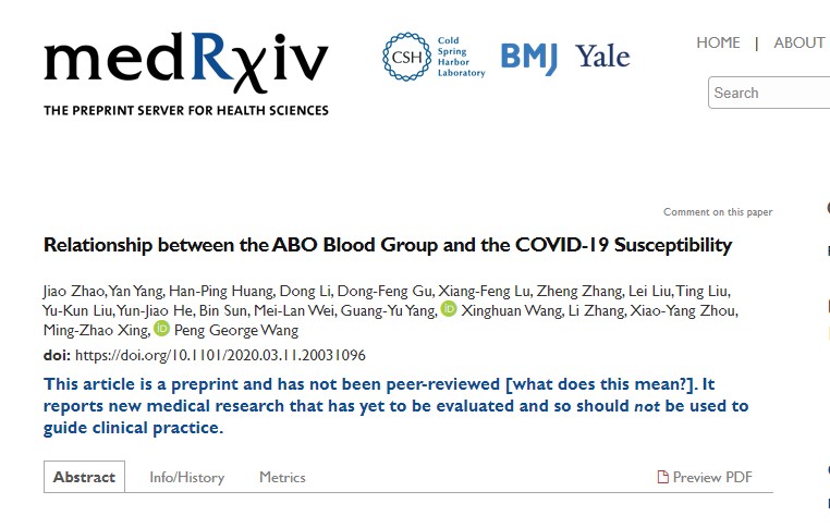 Στον γενικό πληθυσμό της Κίνας η ομάδα αίματος Ο είναι συχνότερη (34%) σε σχέση με την ομάδα Α (32%), όμως μεταξύ των ασθενών με Covid-19 η κατάσταση είναι αντίστροφη, καθώς το ποσοστό με ομάδα Ο βρέθηκε μικρότερο (26%), ενώ με ομάδα Α μεγαλύτερο (38%). Τα ποσοστά ασθενών με ομάδα Β είναι 26,5% και με ομάδα ΑΒ 10%, έναντι 25% και 9%, που είναι αντιστοίχως στον γενικό πληθυσμό, δηλαδή σε αυτές τις ομάδες αίματος οι διαφορές είναι μικρές.
