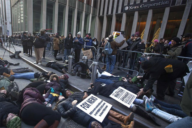Διαδηλωτές συγκεντρώθηκαν έξω από τα γραφεία της εταιρείας News Corporation, διαμαρτυρόμενοι για τη στάση του Fox News και της New York Post, σε σχέση με τις διαδηλώσεις των τελευταίων μηνών για την αστυνομική βία εναντίον Αφροαμερικανών.