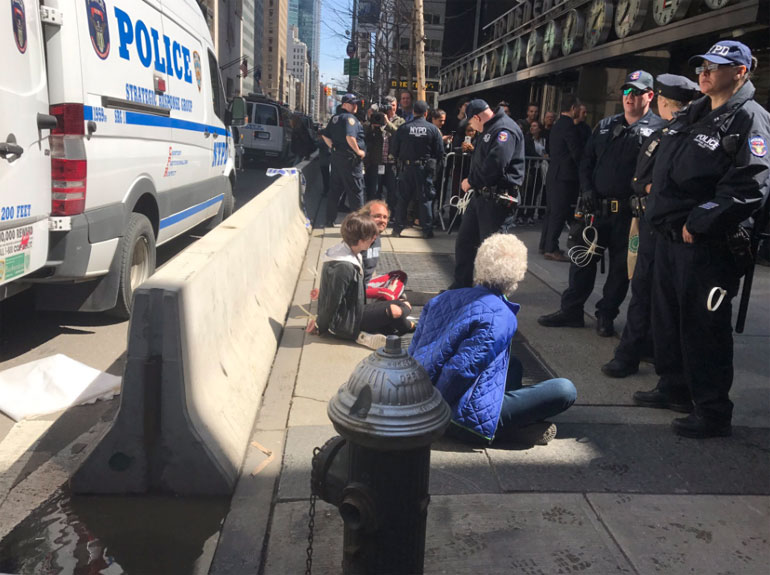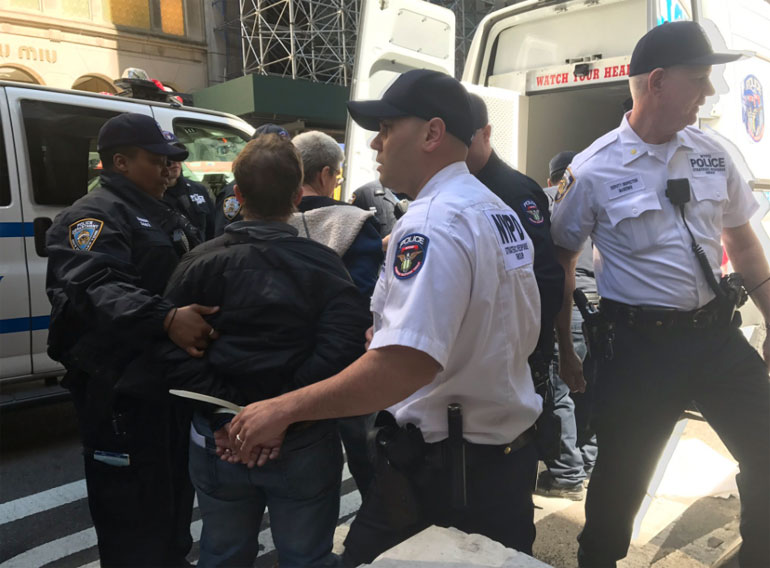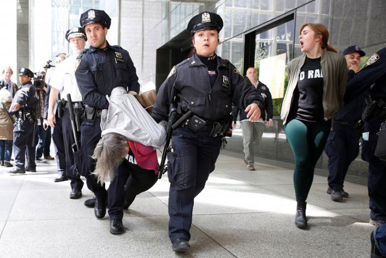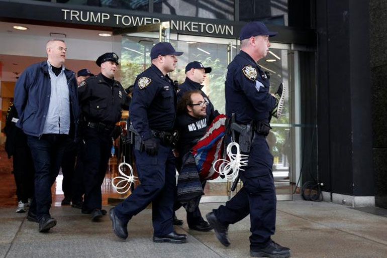Η αστυνομία της Νέας Υόρκης συνέλαβε στο λόμπι του Πύργου Τραμπ 25 άτομα που διαμαρτύρονταν για τις πολιτικές του προέδρου Ντόναλντ Τραμπ όσον αφορά τη μετανάστευση και τον έλεγχο των συνόρων.