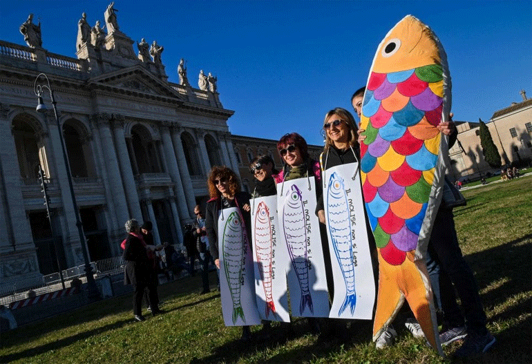 Οι καιρικές συνθήκες ευνοούν τη σημερινή πρωτοβουλία, από την στιγμή που η κακοκαιρία των περασμένων ημερών έχει αφήσει την θέση της σε ηλιοφάνεια, έστω και με σχετικά χαμηλή θερμοκρασία. Οι συμμετέχοντες που μέχρι αυτή την στιγμή έχουν φτάσει την πλατεία του Σαν Τζοβάνι, κρατούν στο χέρι χάρτινες σαρδέλες. Σε λίγη ώρα, στην πλατεία πρόκειται να φτάσει και μια τεράστια «ιπτάμενη σαρδέλα».