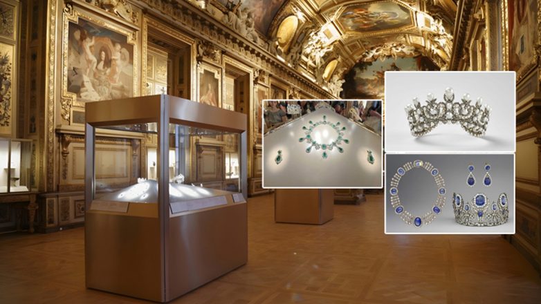 Η λεία από αυτή την τολμηρή ληστεία, η οποία έγινε πρωτοσέλιδο σε όλο τον κόσμο, εκτιμάται σε 88 εκατομμύρια ευρώ. Γύρω στις 9:30 π.μ. στις 19 Οκτωβρίου, οι ληστές τοποθέτησαν ένα ανυψωτικό στην πλευρά του μουσείου που βλέπει το Σηκουάνα και δύο από αυτούς, με καλυμμένα τα πρόσωπά τους ανέβηκαν στην Πινακοθήκη Apollo. Αφού έσπασαν ένα παράθυρο και τις προθήκες που περιείχαν τα κοσμήματα με γωνιακούς τροχούς, οι κλέφτες διέφυγαν με δύο σκούτερ που οδηγούσαν οι συνεργοί τους.