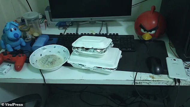 Στο γραφείο του ήταν άθιχτο το φαγητό του και στα πόδια του είχε χυμένο αναψυκτικό ενώ ο ίδιος φορούσε ακόμη τα ακουστικά του.