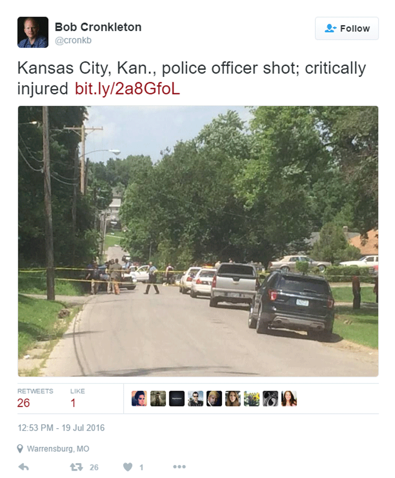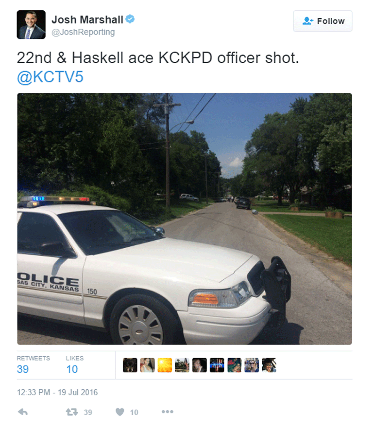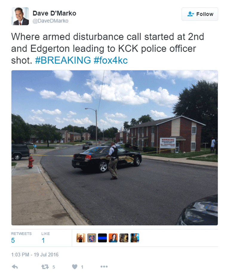 Η αστυνομία κατέκλυσε την περιοχή με δεκάδες αξιωματικούς καθώς από τον Μάΐο έως τώρα ήταν η δεύτερη δολοφονία αξιωματικού της αστυνομίας του Κάνσας Σίτι.