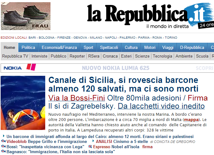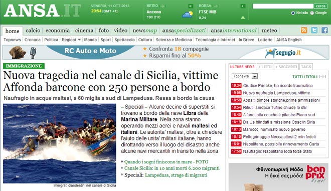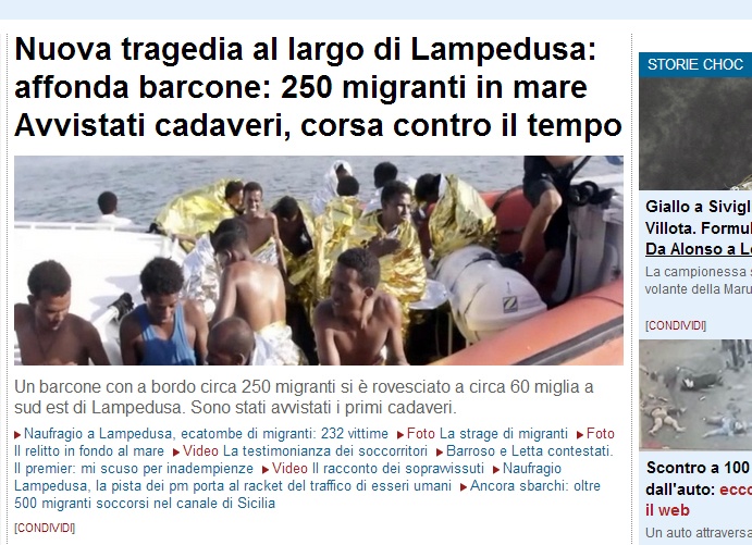 (Il Messaggero: Νέα τραγωδία στη Λαμπεντούζα: Βυθίζεται πλοιάριο: 250 μετανάστες στη θάλασσα. Υπάρχουν πτώματα, μάχη με τον χρόνο)