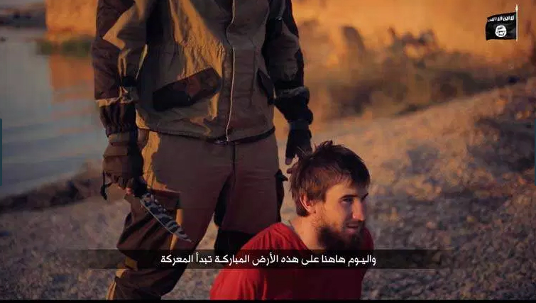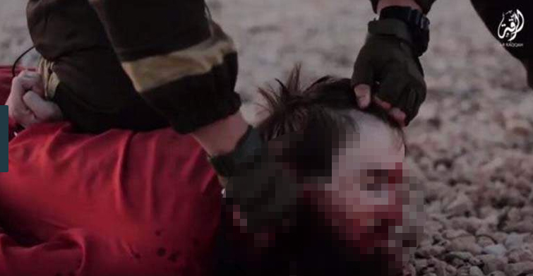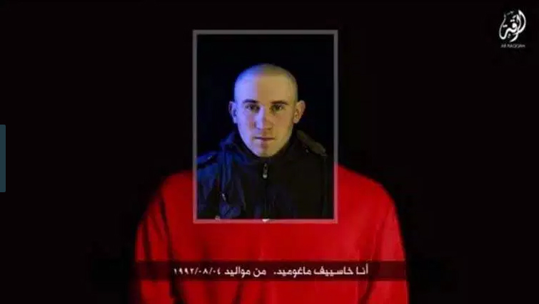 Τα πλάνα που δόθηκαν στη δημοσιότητα από την εξτρεμιστική οργάνωση, τα οποία φέρονται να είναι η απάντηση στις ρωσικές επιδρομές στη Συρία, δείχνουν έναν ρωσόφωνο άνδρας να αποκεφαλίζει έναν Ρώσο όμηρο.