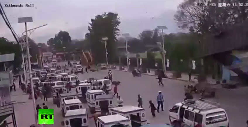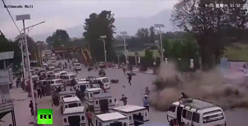 Κόβει την ανάσα video από κλειστό κύκλωμα ασφαλείας εμπορικού κέντρου στην πρωτεύουσα του Νεπάλ που καταγράφει καρέ καρέ τη στιγμή που ένα κτήριο υποχωρεί μπροστά στη μανία της φύσης και γίνεται κομμάτια στο οδόστρωμα πολυσύχναστου δρόμου.