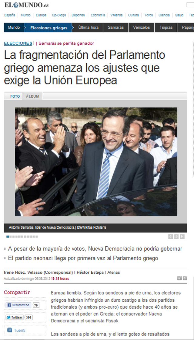 Τα διεθνή μέσα για τις εκλογές, Πρώτη καταχώρηση: Κυριακή, 6 Μαΐου 2012, 19:02