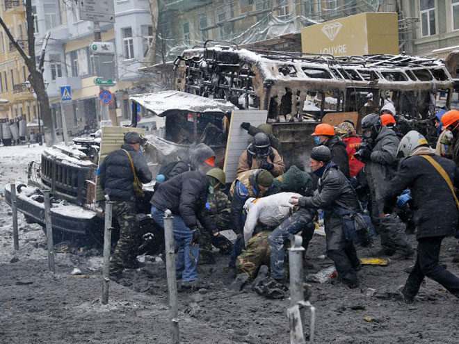 Οι συνεχιζόμενες σφοδρές συγκρούσεις μεταξύ διαδηλωτών και δυνάμεων ασφαλείας στο Κίεβο είχαν χτες τη νύχτα τρεις νεκρούς.