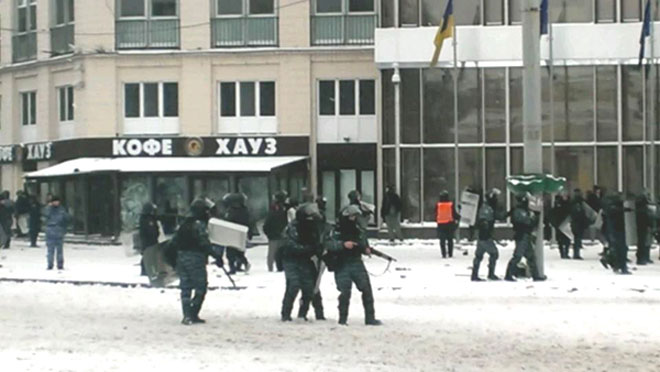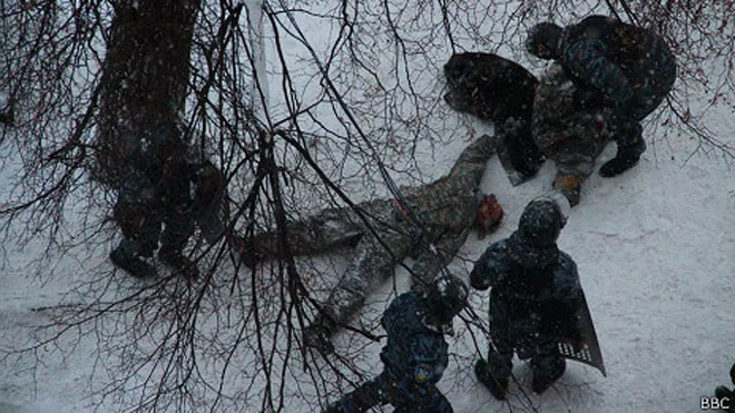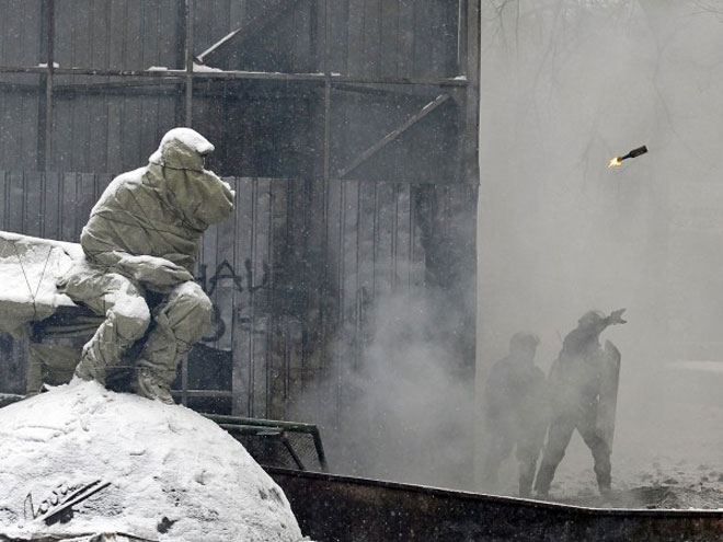 Το νέο κύμα βιαιοτήτων ξέσπασε όταν η ουκρανική κυβέρνηση πέρασε την περασμένη Πέμπτη νόμο που προβλέπει ακόμη και πολυετείς ποινές φυλάκισης με διαδικασίες εξπρές.