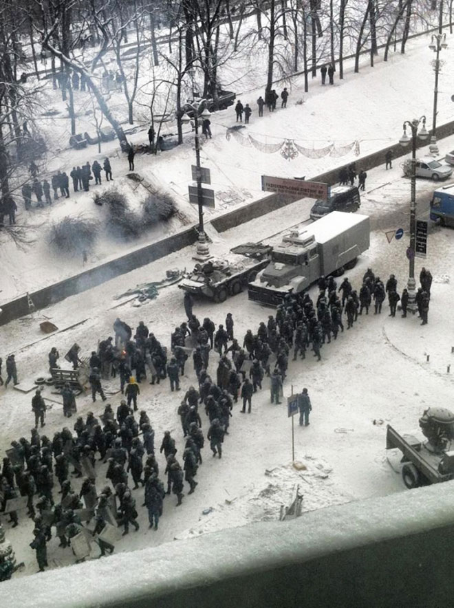 Ο πρόεδρος της χώρας Βίκτορ Γιανουκόβιτς φαίνεται διατεθειμένος να συνομιλήσει τώρα με την αντιπολίτευση. Όπως ανακοίνωσε ο ηγέτης της αντιπολίτευσης Βίταλι Κλίτσκο μετά από συνάντηση που είχε με τον Γιανουκόβιτς, «ο πρόεδρος συναίνεσε στη σύσταση επιτροπής διαλόγου με στόχο την αποκλιμάκωση».