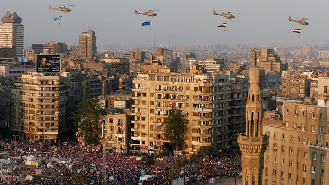 Στην πλατεία Ταχρίρ όπου έχουν κατασκηνώσει ομάδες διαδηλωτών κατά του Μόρσι, ενώνουν τις δυνάμεις τους με άλλους που συγκεντρώνονται εκεί για να πραγματοποιήσουν πορείες σήμερα.