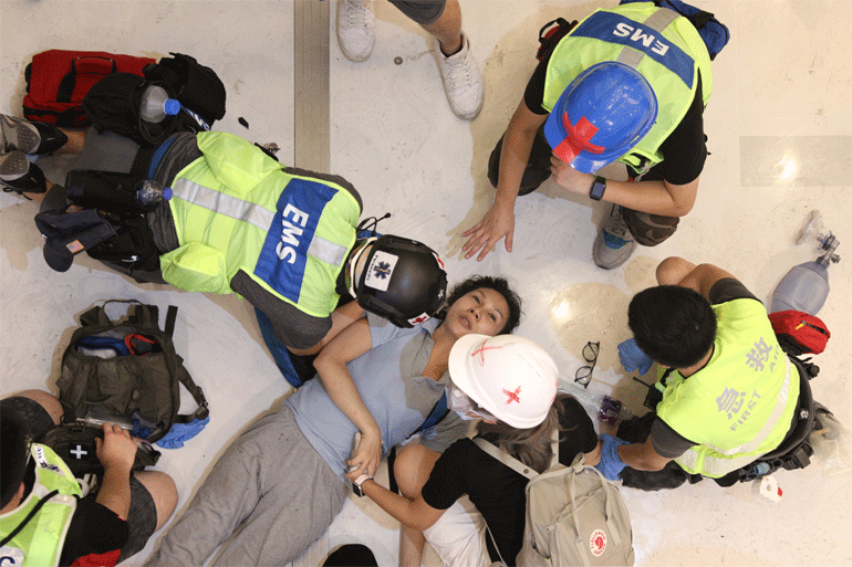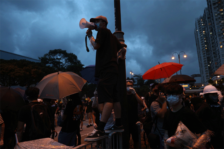 Σήμερα επτά δημοσιογραφικές οργανώσεις του Χονγκ Κονγκ πραγματοποίησαν σιωπηλή πορεία διαμαρτυρίας απαιτώντας οι αρχές να διαφυλάξουν την ελευθερία του Τύπου και να προστατεύουν τους δημοσιογράφους από την αστυνομική βία στη διάρκεια των διαδηλώσεων.