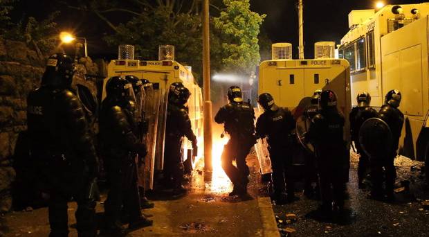 Οι διαδηλωτές στην οδό Woodvale εξεσφενδόνιζαν μπουκάλια και ξύλα εναντίον των γραμμών της Αστυνομίας, ενώ από την άλλη μεριά η δυνάμεις καταστολής κράτησαν μια πιο μετριοπαθή στάση σε σχέση με την χθεσινή που εξαπέλυσαν πυρά με πλαστικές σφαίρες και κανόνια νερού, κάτι που κράτησε τα πνεύματα σε σχετικά χαμηλότερους τόνους.