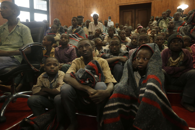 Την Πέμπτη οι τζιχαντιστές της Μπόκο Χαράμ έδωσαν στη δημοσιότητα ένα βίντεο όπου εικονίζονταν δεκάδες παιδιά σε ένα δάσος. Ένα από αυτά, πολύ βρόμικο και με γρατζουνιές στο πρόσωπο, ακούγεται στο βίντεο να λέει ότι η «συμμορία του (Αμπουμπακάρ) Σεκάου», του ιστορικού ηγέτη της Μπόκο Χαράμ, απήγαγε 520 αγόρια και σκότωσε ορισμένα από αυτά. Μέχρι στιγμής παραμένει άγνωστο αν τα παιδιά που διακρίνονται στο βίντεο είναι τα ίδια με εκείνα που απελευθερώθηκαν. Αδιευκρίνιστο επίσης είναι αν υπάρχουν και άλλοι έφηβοι –και πόσοι– στα χέρια των τζιχαντιστών.