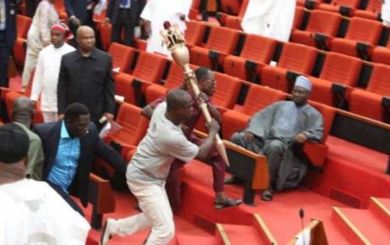 Η αστυνομία της Νιγηρίας ανακοίνωσε σήμερα ότι βρέθηκε «κάτω από μια γέφυρα» το σκήπτρο της Γερουσίας της χώρας, το οποίο είχε κλαπεί χθες από τρεις άνδρες που εισέβαλαν στην αίθουσα την ώρα που συνεδρίαζε.