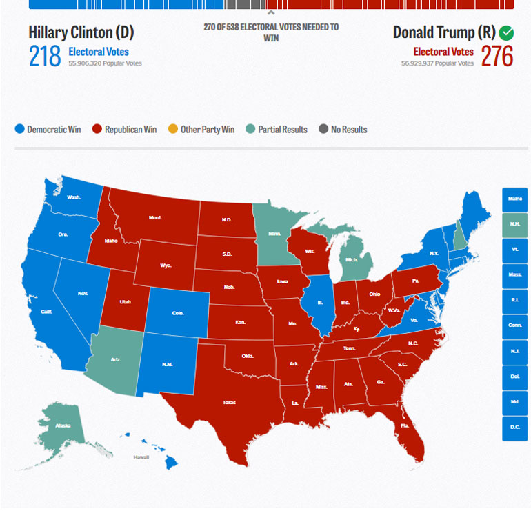 Ο Τραμπ είναι ο νέος ένοικος του Λευκού Οίκου συγκεντρώνοντας 276 εκλέκτορες…