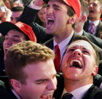 Είναι η διαμαρτυρία τους και απέναντι στην πολιτική που ακολουθήθηκε αλλά και απέναντι στα δημοσιογραφικά «παπαγαλάκια» που μέχρι και τις 02.30 ώρα Ελλάδος προσπαθούσαν να πείσουν μέσα από τα ΜΜΕ για την άνετη νίκη της Χίλαρι Κλίντον, ωστόσο λίγη ώρα αργότερα χαμήλωναν τους τόνους.