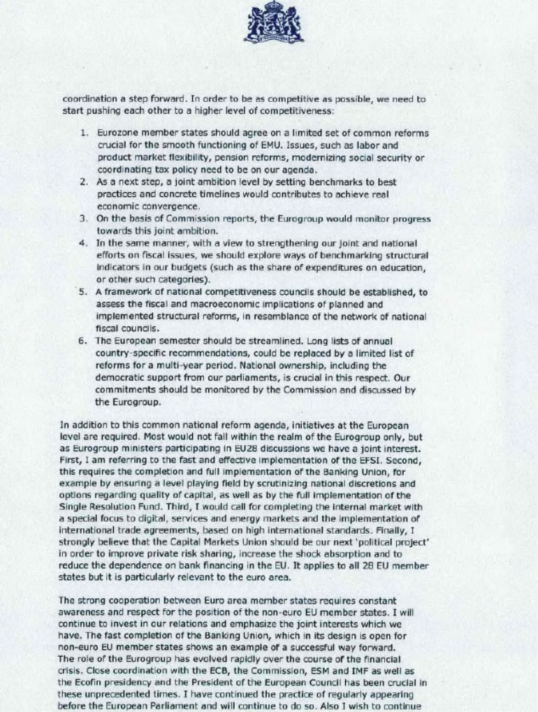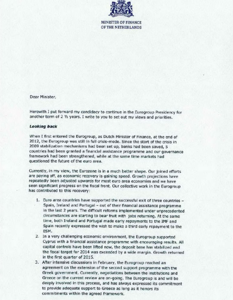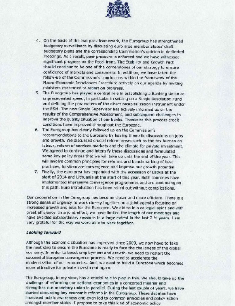Η τετρασέλιδη επιστολή του προέδρου του Eurogroup:
