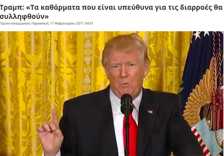 Όσο για το ξέσπασμα Τραμπ εναντίον των μίντια, των υπηρεσιών αντικατασκοπείας και των Δημοκρατικών, προφανώς έγινε για λαϊκή κατανάλωση. Επειδή η πιο πρόσφατη δημοσκόπηση του Gallup poll δείχνει πως το 40% εγκρίνει τις πρώτες ημέρες της προεδρίας του, ενώ το 55% τις αποδοκιμάζει.