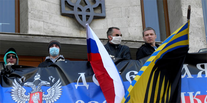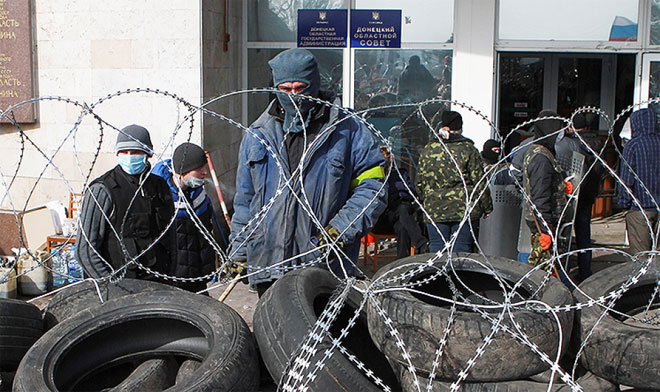 Διαδηλωτές, φιλορωσικού προσανατολισμού, κήρυξαν τη δημιουργία της αυτονομιστικής δημοκρατίας του Ντονέτσκ, έχοντας ήδη καταλάβει κυβερνητικά κτίρια της περιοχής.