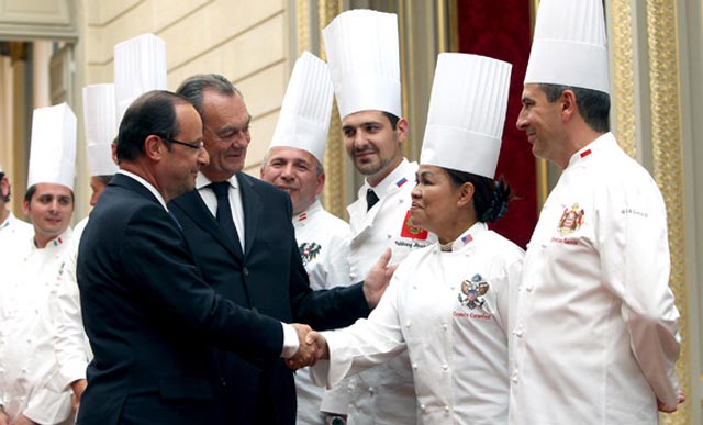 Γνώρισε έξι προέδρους και διορίστηκε αρχιμάγειρας πριν από εννιά χρόνια, επί προεδρίας Σιράκ. Το μενού για το τελευταίο γεύμα που ετοίμασε για τον Φρανσουά Ολάντ: φρέσκο καβούρι, φέτα φιλέτου με ποικιλία μανιταριών και για επιδόρπιο, μιλφέιγ βατόμουρο.