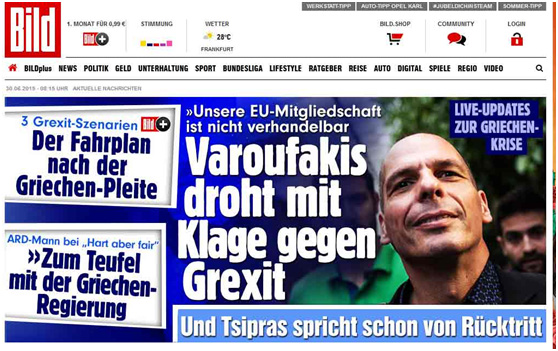 Η BILD αντιγράφει από τη βρετανική «Τelegraph» τη δήλωση Βαρουφάκη για ενδεχόμενη προσφυγή στο Δικαστήριο Ευρωπαϊκών Κοινοτήτων με στόχο να «μπλοκαριστεί» το Grexit.