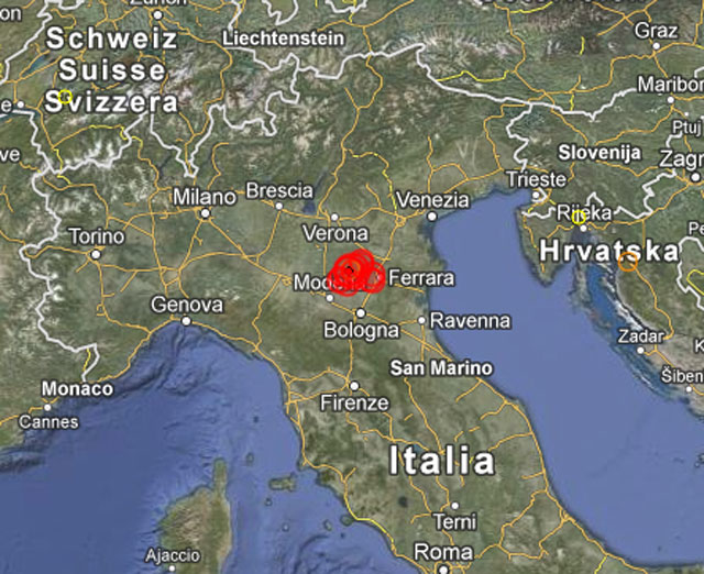 Ο σεισμός, ο οποίος αρχικά αναφέρθηκε από το USGS ότι είχε μέγεθος 6,3 βαθμών, είχε επίκεντρο 36 χιλιόμετρα βόρεια-βορειοδυτικά της Μπολόνια στη Βόρεια Ιταλία και σχετικά χαμηλό εστιακό βάθος 10 χιλιομέτρων, σύμφωνα με το Αμερικανικό Ινστιτούτο.