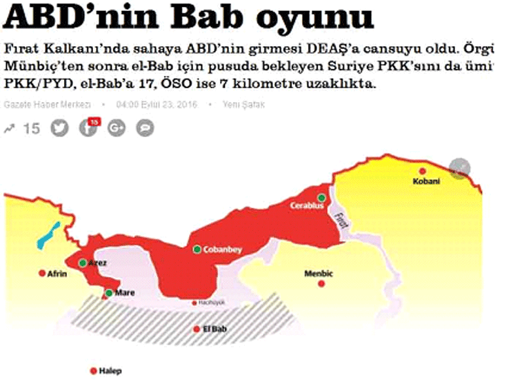 Ο τίτλος της Yeni Safak στο δημοσίευμα αυτό είναι «Το αμερικάνικο παιχνίδι στην αλ-Μπαμπ».