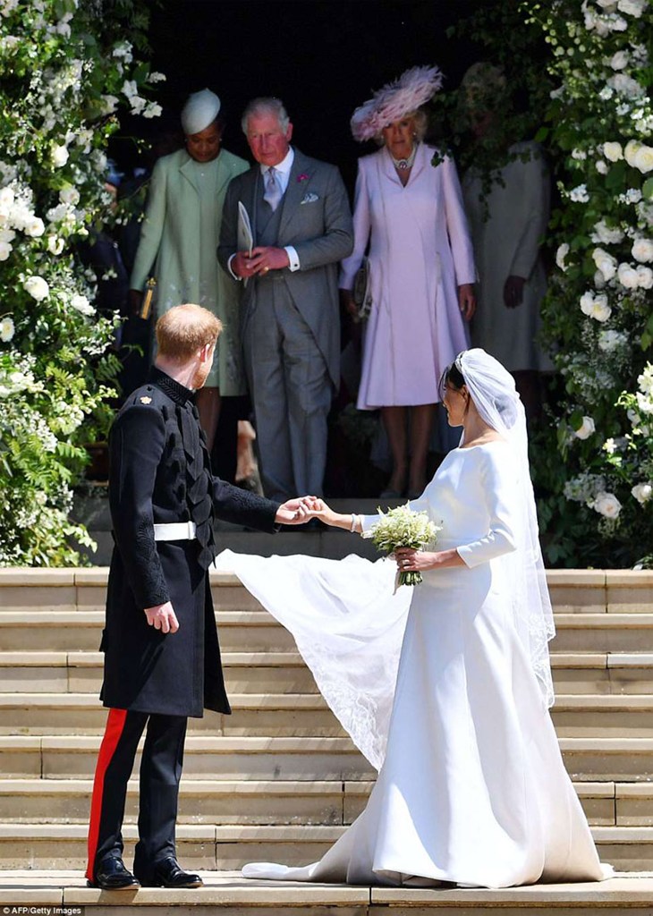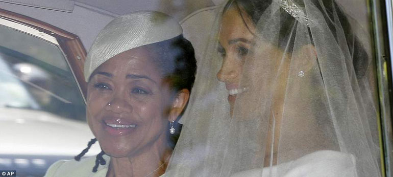 Με τη συγκίνηση ζωγραφισμένη στα μάτια της η 61χρονη Ντόρια Ράγκλαντ συνόδευε την κόρη της στο αυτοκίνητο που τους οδήγησε στον Ναό του Αγίου Γεωργίου. Μεγάλος απών ο πατέρας της Μέγκαν ο οποίος όμως σε δηλώσεις του αμέσως μετά τον γάμο της κόρης του στον ειδησεογραφικό ιστότοπο της σόουμπιζ ΤΜΖ είπε: «Η αγαπούλα μου είναι υπέροχη, δείχνει πολύ ευτυχισμένη».