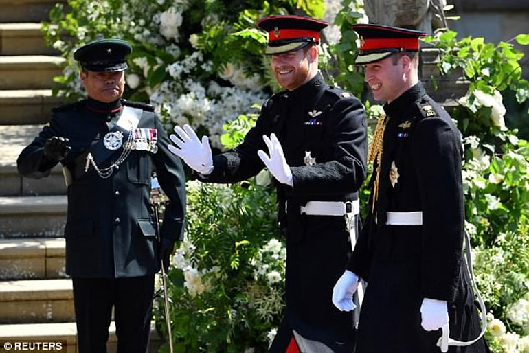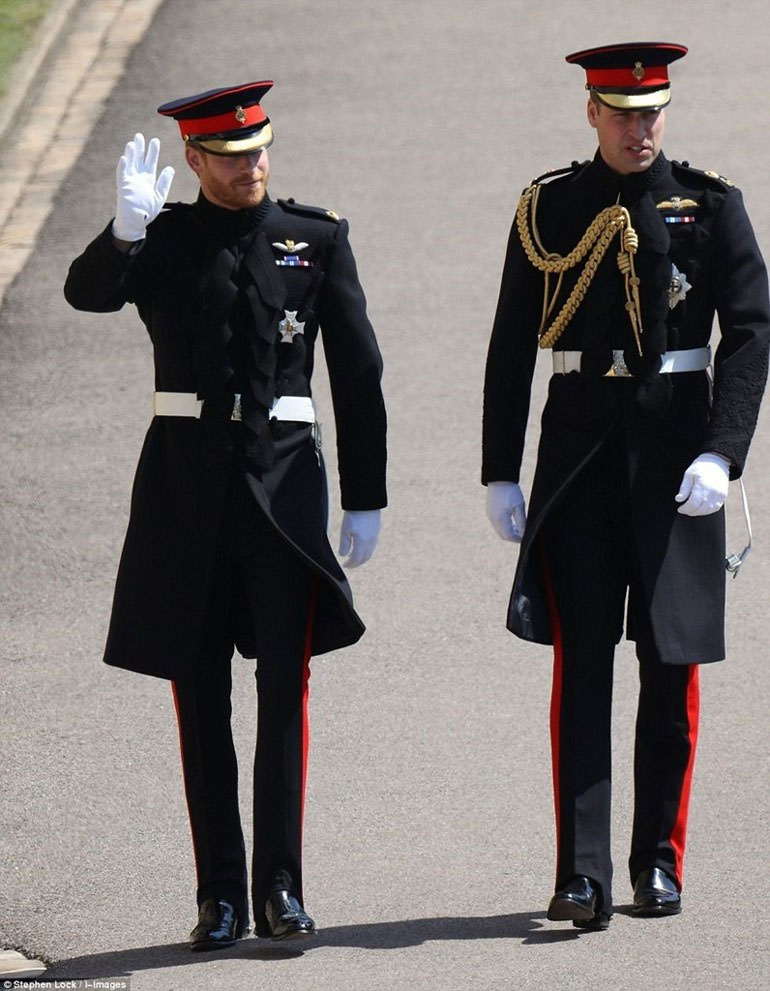O πρίγκιπας Χάρι με τον κουμπάρο και αδελφό του, Ουίλιαμ, αφού χαιρέτησαν το πλήθος κόσμου που συγκεντρώθηκε έξω από το κάστρο κατευθήνθηκαν στο παρεκκλήσι του Αγίου Γεωργίου.