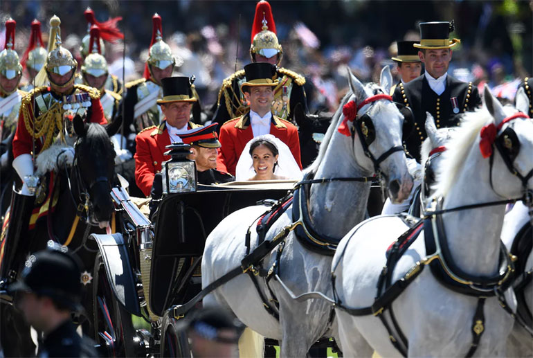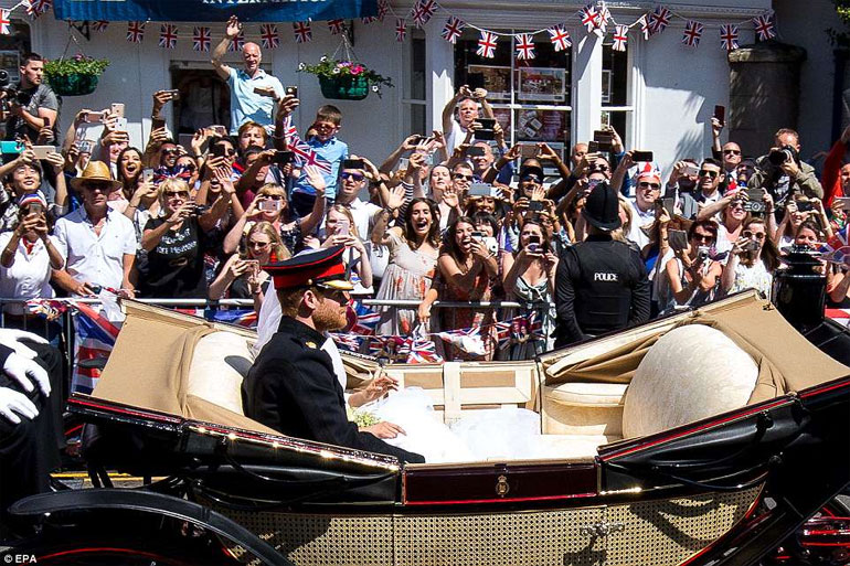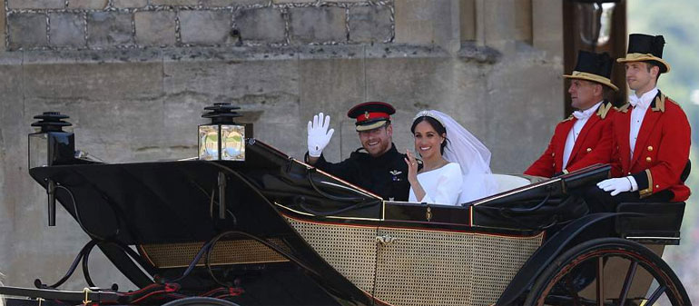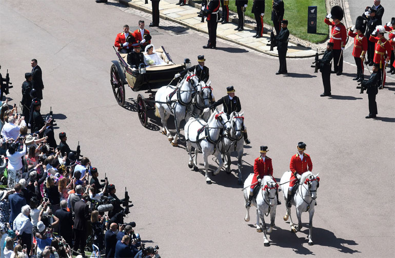 Στις 13.05 (15.05, ώρα Ελλάδος) οι νεόνυμφοι πραγματοποίησαν βόλτα 25 λεπτών με άμαξα στους δρόμους του Ουίνδσορ.
