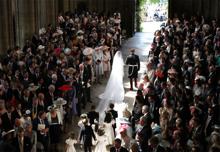 Για τον γάμο του πρίγκιπα Χάρι, έκτου στη σειρά διαδοχής του βρετανικού θρόνου, ο κατάλογος των προσκεκλημένων δεν περιλάμβανε πολιτικούς αλλά πολλές προσωπικότητες της σόουμπιζ και φίλους του ζευγαριού.