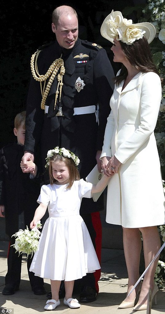 Την πρώτη της επίσημη εμφάνιση μετά από τη γέννηση του πρίγκιπα Louis έκανε η Kate Middleton στον γάμο του πρίγκιπα Harry και της Meghan Markle, η οποία έφτασε στο παρεκκλήσι του Αγίου Γεωργίου με τα παιδιά της, Charlotte και George, που ήταν παρανυφάκια στον λαμπερό γάμο.