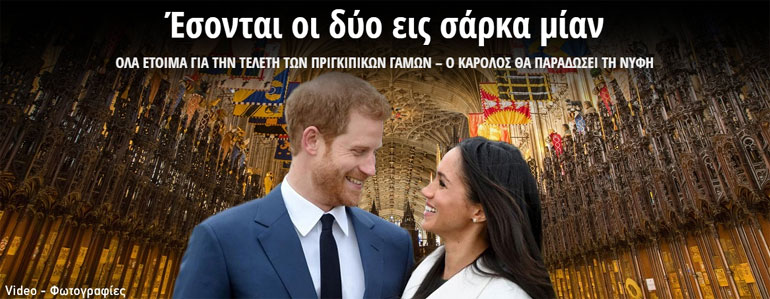 Το μεγάλο «ναι» είπαν το Σάββατο ο Χάρι και η Μέγκαν, ενώπιον της βασίλισσας Ελισάβετ, γονέων, συγγενών και φίλων, στο παρεκκλήσι του Αγίου Γεωργίου στο παλάτι του Ουίνδσορ και είναι πλέον σύζυγοι, όπως τους ονόμασε ο αρχιεπίσκοπος του Καντέρμπερι Τζάστιν Ουέλμπι, πνευματικός ηγέτης της Αγγλικανικής Εκκλησίας, ο οποίος και τέλεσε τον λαμπρό τους γάμο.