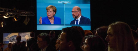 «O υποψήφιος καγκελάριος Μάρτιν Σουλτς πολέμησε γενναία στην τηλεμαχία την Ά. Μέρκελ. Εντούτοις δεν είχε τεράστιες επιτυχίες. Η έμπειρη καγκελάριος έδινε συνολικά την εντύπωση της πιο αρμόδιας. Η τηλεμαχία δεν θα φέρει καμιά σημαντική αλλαγή στη μεταστροφή του κλίματος. Ο Σοσιαλδημοκράτης υποψήφιος πολέμησε γενναία, αλλά δεν μπόρεσε να της καταφέρει το ουσιαστικό εκείνο πλήγμα το οποίο χρειαζόταν για να προκαλέσει τον αρχικό ενθουσιασμό, τον οποίο προκάλεσε στην αρχή της ανακήρυξής του ως υποψηφίου καγκελαρίου» τονίζει η οικονομική εφημερίδα «Ηandelsblatt».