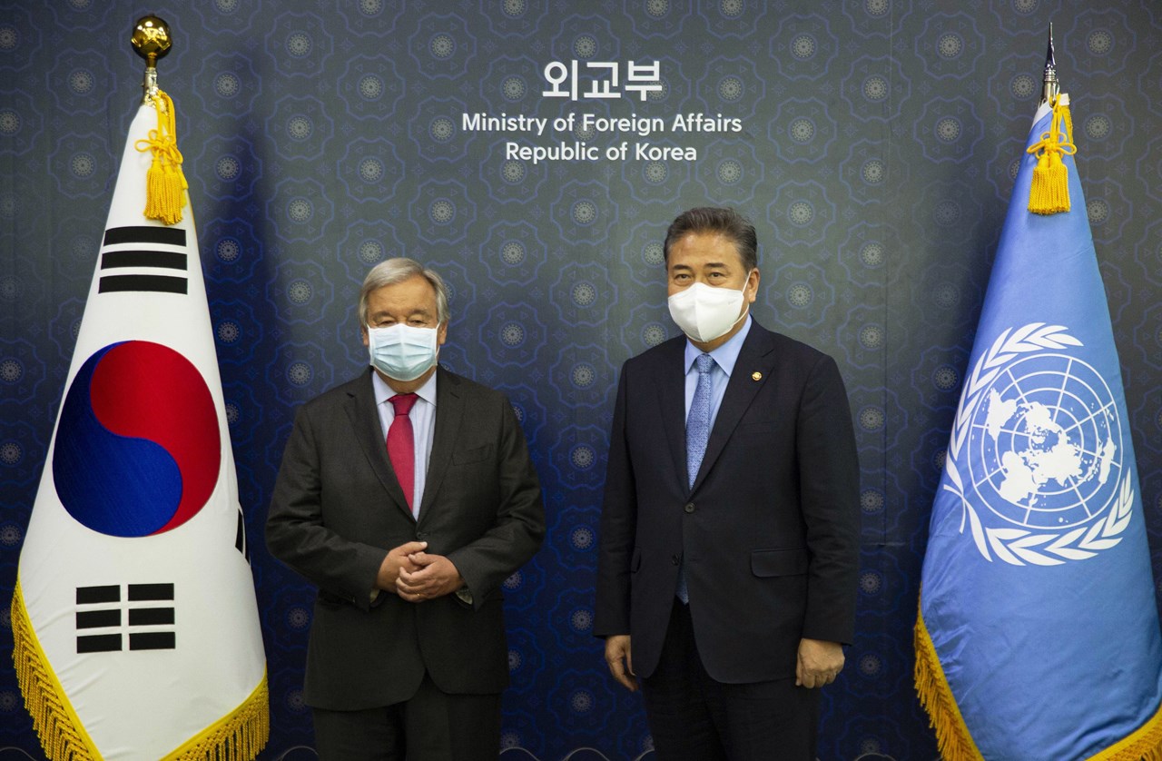 Σε συνάντηση με τον υπουργό Εξωτερικών της Νότιας Κορέας Παρκ Τζιν, ο Γκουτέρες δεσμεύθηκε να στηρίξει τις διπλωματικές προσπάθειες προκειμένου να πεισθεί η Βόρεια Κορέα να παραδώσει τα πυρηνικά της όπλα.