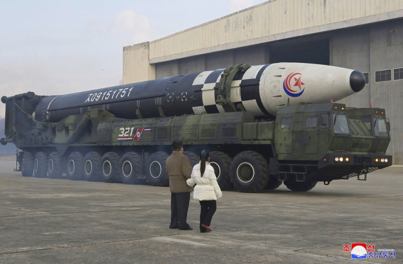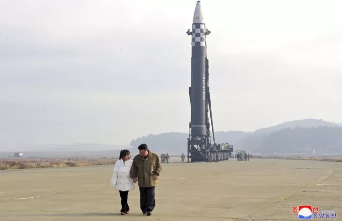 Ο Βορειοκορεάτης ηγέτης, Κιμ Γιονγκ Ουν, επέβλεψε την εκτόξευση του τελευταίου του διηπειρωτικού βαλλιστικού πυραύλου συνοδευόμενος από την κόρη του, η ύπαρξη της οποίας αποκαλύφθηκε έτσι για πρώτη φορά στον κόσμο, σε ένα μήνυμα που δημοσιοποίησε το Σάββατο το κρατικό πρακτορείο ειδήσεων KCNA.