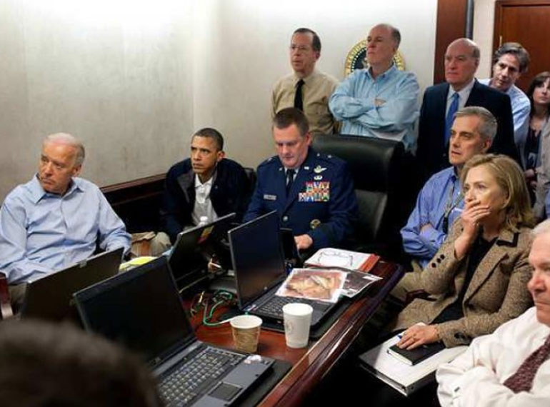 Υπήρχαν βέβαια και δύσκολες στιγμές και δύσκολες φωτογραφίες. Η εικόνα από την αίθουσα των επιχειρήσεων όπου ανακοινώθηκε ο θάνατος του Οσάμα Μπιν Λάντεν. Ο φωτογράφος Πητ Σόουζα ήταν σε μια γωνία δίπλα στον Ομπάμα, βλέποντας τις οθόνες στις οποίες παρακολουθούσαν με το προσωπικό ασφαλείας του Λευκού Οίκου ό, τι συνέβαινε στο Πακιστάν. Όλα αυτά περιγράφει ο Σόουζα σε ένα νέο φωτογραφικό βιβλίο για τα οκτώ χρόνια του στο πλευρό του Μπαράκ.