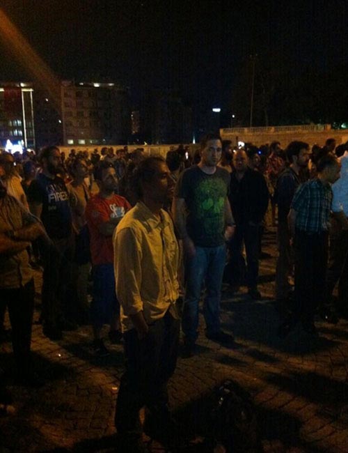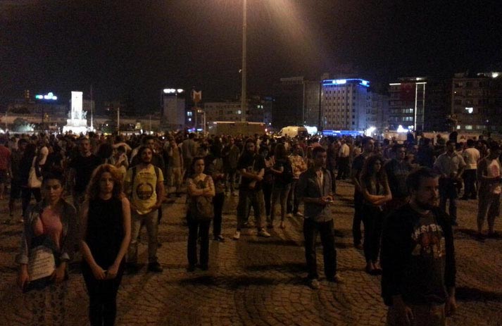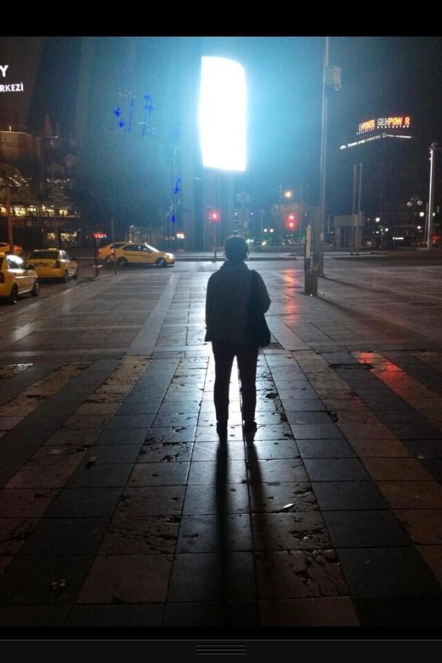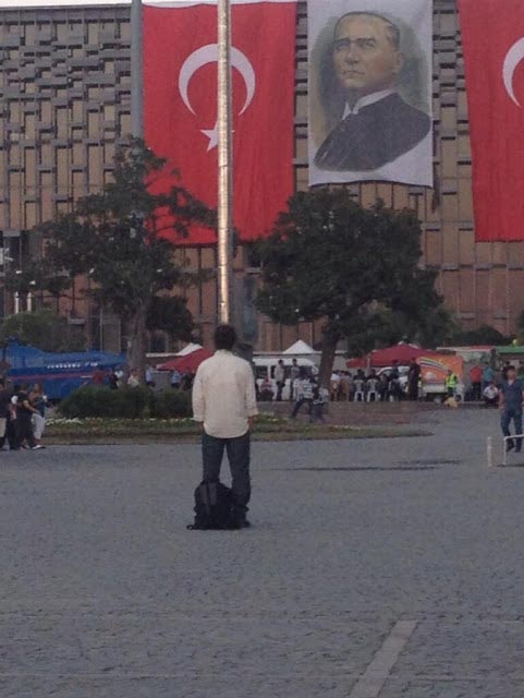 Τότε στάθηκε στο ίδιο σημείο χωρίς να κινείται, από τις 18:00, κοιτώντας τη σημαία με το πρόσωπο του Κεμάλ Ατατούρκ, που είναι κρεμασμένη στο Πολιτιστικό Κέντρο Ατατούρκ, σημείο όπου έχουν εκτυλιχθεί σκληρές συγκρούσεις διαδηλωτών και αστυνομικών τις τελευταίες τρεις εβδομάδες.