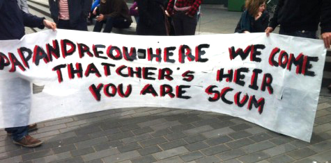 Με συνθήματα υπέρτατης αγάπης και εκτίμησης όπως «Παπανδρέου κάθαρμα, διάδοχε της Θάτσερ» και άλλα γλαφυρά, ο Γιώργος Παπανδρέου αισθάνθηκε κυριολεκτικά σαν να βρίσκεται στην πατρίδα του.