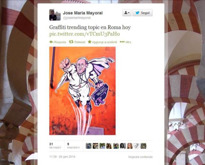 Ένας Ισπανός δημοσιογράφος το ανακάλυψε κοντά στο Βατικανό και αμέσως το «ανέβασε» στον προσωπικό του λογαριασμό στο twitter.