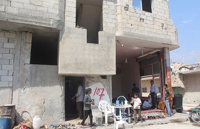 Τις συγκλονιστικές εικόνες του πατέρα του Αϊλάν, την ώρα που επιστρέφει στο βομβαρδισμένο σπίτι της οικογένειας στο Κομπάνι, κατέγραψε ο φωτογραφικός φακός των MME.