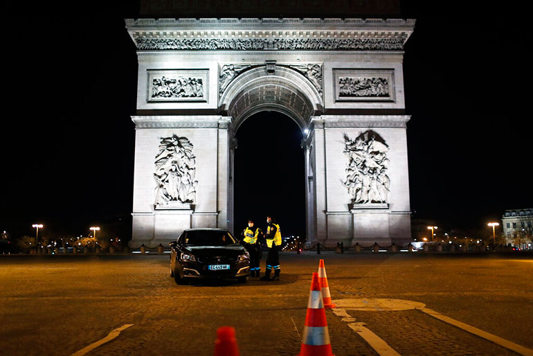 Στο Παρίσι, η λεωφόρος των Ηλυσίων Πεδίων ήταν έρημη. Μερικοί αστυνομικοί σταματούσαν τα λίγα οχήματα που περνούσαν για να βεβαιωθούν ότι είχαν την απαραίτητη άδεια μετακίνησης.